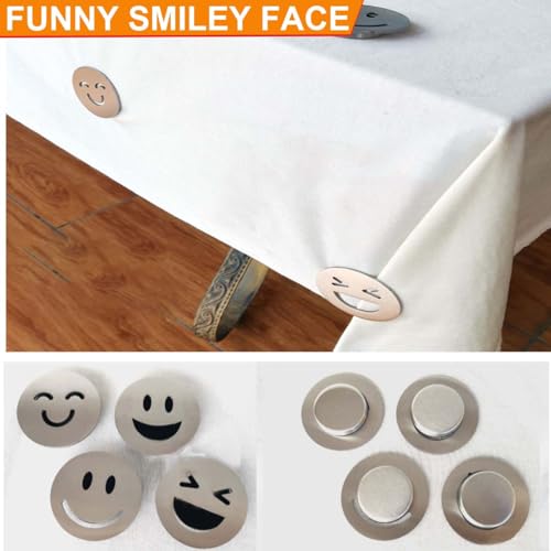 【8 pezzi Clip per tovaglia universale】: 8 pezzi di clip per tovaglia smiley sono perfetti per il picnic o il tavolo da pranzo. La loro funzione principale è quella di tenere la tovaglia in posizione con una forte forza magnetica per evitare che la tovaglia si muova. Le clip per tovaglia sono realizzate in acciaio inossidabile, durevoli e resistenti alla ruggine, in grado di fissare la tovaglia sulla maggior parte dei tavoli da picnic.