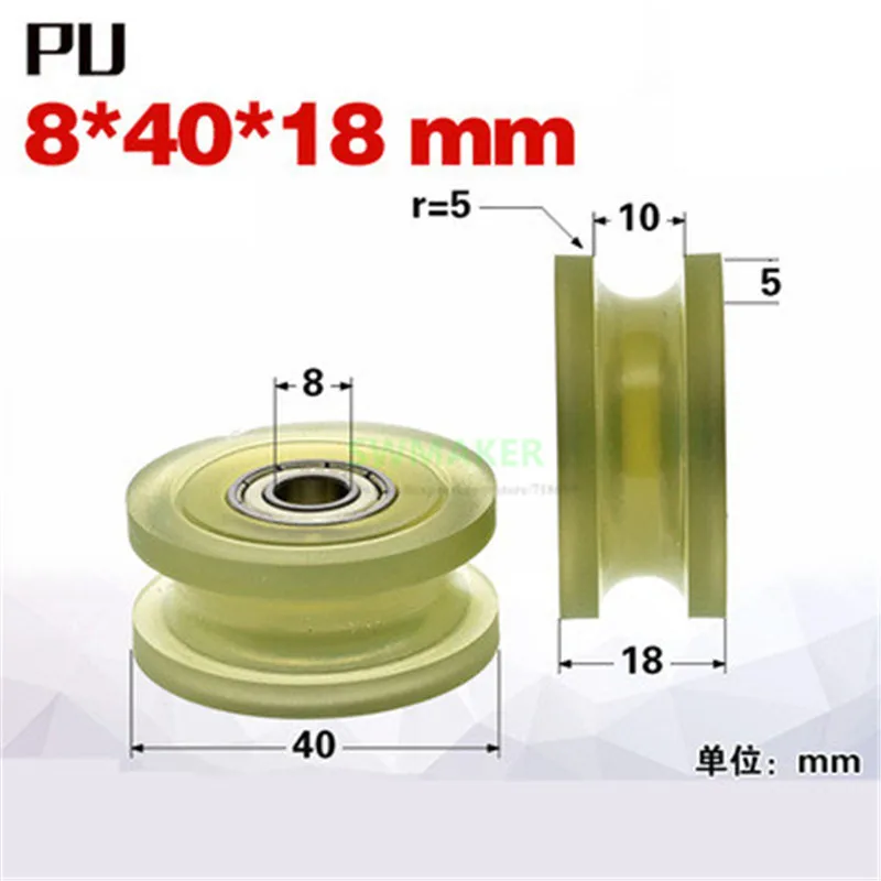 1pcs 8*40*18mm U-groove double bearing 698 PU pulley / guide pulley, Bearing replaceable elastic, silent for R5 track