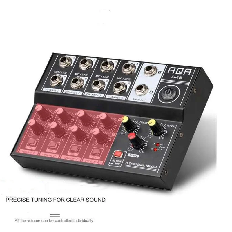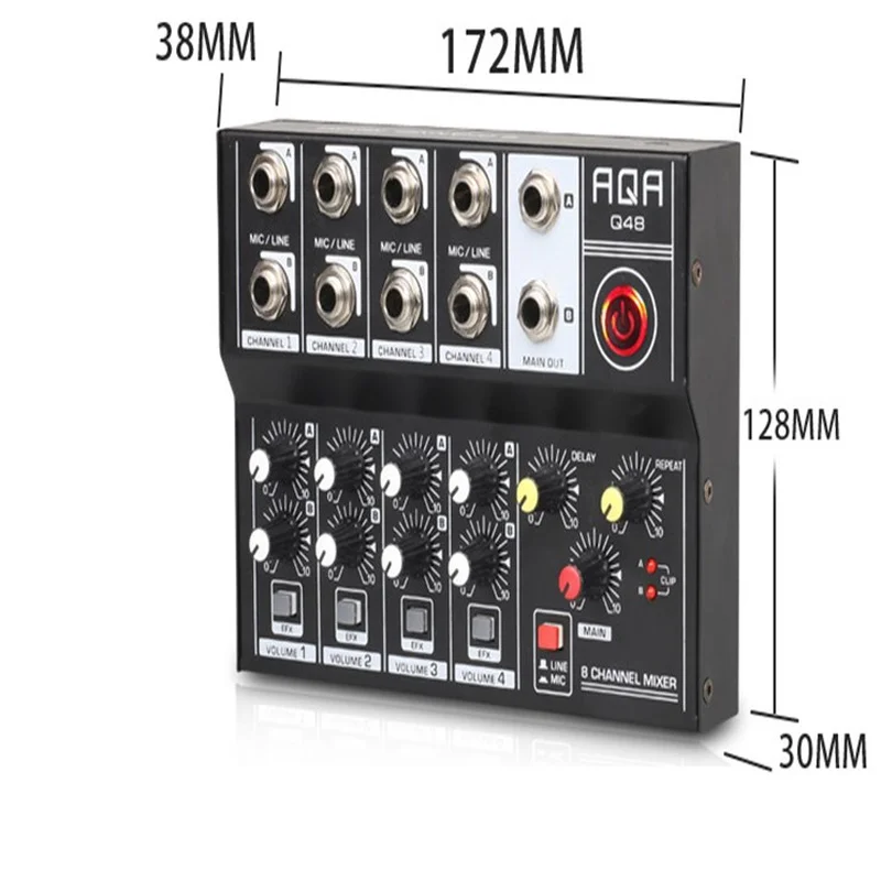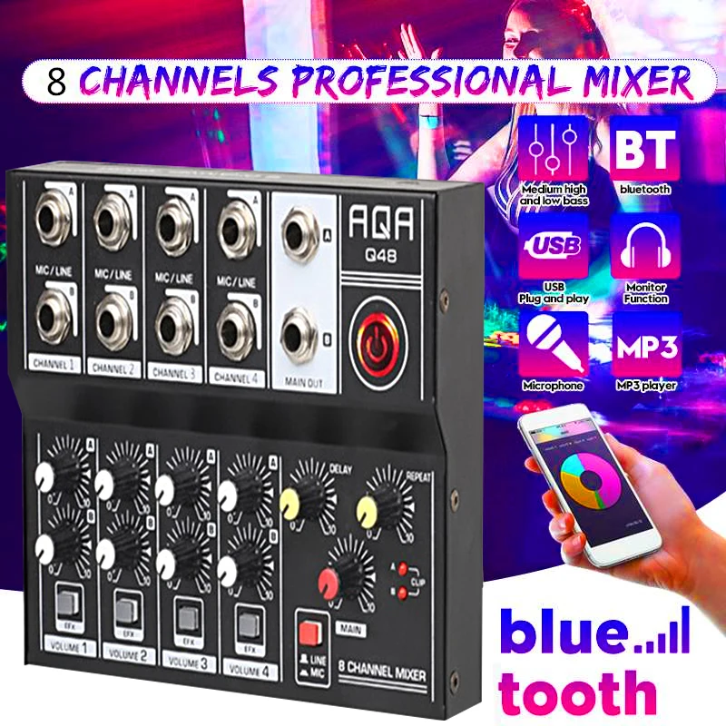 AQA 8-channel DJ Mixer Effector Live Recording Conference Hub Stereo Sound Reverberation Amplifier Bluetooth USB Record Computer