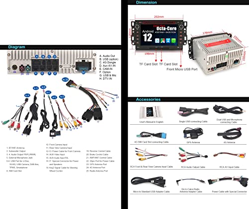 Android 12- 4GB RAM+64GB ROM】Octa Core, 2* A75 + 6* A55 64-bit 2000MHz CPU, decoder canbus incluso. Supporto di 2 schede e 4 USB fino a 6* 256GB di memoria estesa. Schermo IPS da 7 pollici, display full HD ultra chiaro. Design unico-- 8 temi UI-Style da scegliere. Scattante e reattivo, eccellente capacità multitasking.