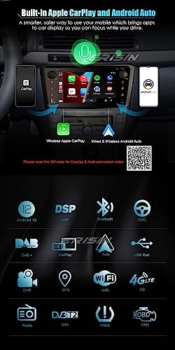 【Carpaly & Android Auto & DSP】✔Collegare l'iPhone tramite Bluetooth o il telefono Android tramite USB a questa autoradio, per accedere al GPS, alle chiamate e alla musica dei telefoni cellulari mentre si è in viaggio, integrare perfettamente il telefono per utilizzarlo sul grande schermo, rendere la guida più facile e sicura. ✔Processore audio digitale incorporato, selezione dell'equalizzatore reale a 30 bande, regolazione di 5 effetti sonori, per un'esperienza audio ottimale.