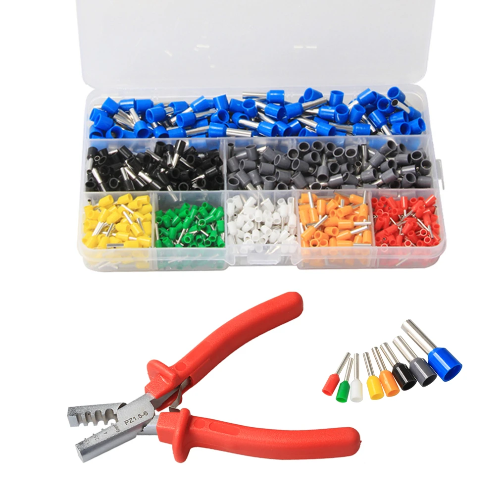 800Pcs Cable Wire Connector Crimping Terminal Assorted set with Hand Ferrule Crimper Plier Crimp Tool