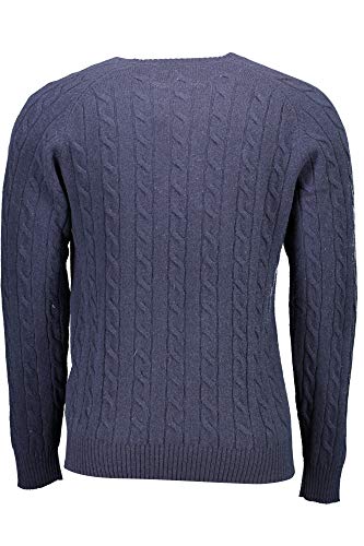 Gant 8050076-433 Lambswool Cable Crew Pullover Uomo Girocollo a Coste Blu Navy 100% Lana Regular Fit (XXXXL, Blu Navy)
