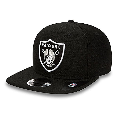 Con il frontalino rinforzato e la tipica visiera piatta, l'attualissimo Cappellino 9Fifty DryEra Raiders del marchio New Era e dotato di un look vincente. La visiera e lunga 7 cm, mentre la calotta del raffinato cappellino da baseball e alta 10.