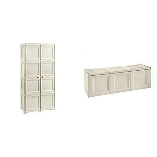 TontarelliTontarelli 8085555210 Omnimodus - Armadio A 2 Ante Con Mensola A 4 Scomparti E Appendino & Baule Grande Omnimodus Angora Mobile Contenitore, Polipropilene, 44X126X40