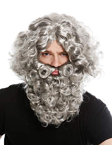 WIG ME UP - 8115-A+B-ZA68R Parrucca Barba Barba folta Set Grigio Eremita Selvaggio Profeta Mosè Noè Mago
