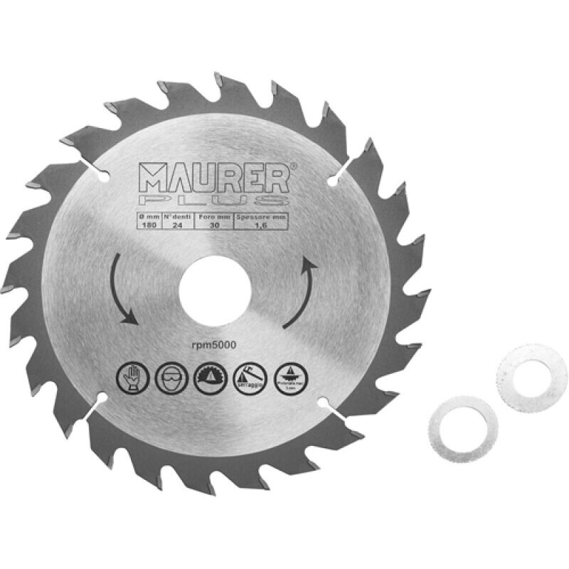 DISCO PER LEGNO 180MM - DIAMETRO DISCO 180MM) -FORO mm30/20/16(con riduttore in dotazione) - DENTI DIAMANTATI - NUMERO DENTI 24 - SPESSORE DENTE 2,5MM Descrizione Lama widia per legno - Denti al carburo di tungsteno - Dentatura alternata per tagli lungovena e trasversali di legni in genere, compensati, faesite, multistrato, ecc. - Velocità 8000-12000 giri