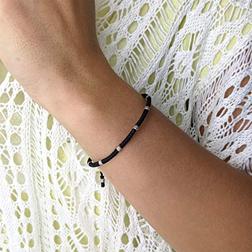 81stgeneration Bracciale Argento .925 Semplice Regolabile Cotone Nero Amicizia