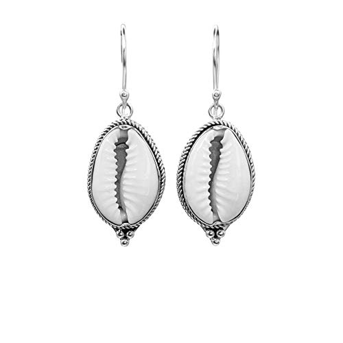 81stgeneration Orecchini a Gancio da Donna in Argento Sterling .925 Conchiglia di Ciprea Corda Bali