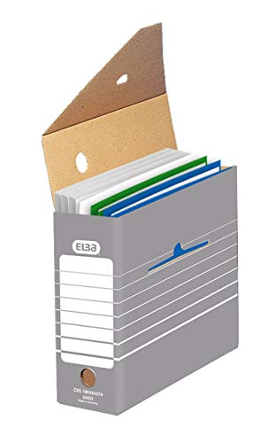 Elba 83422 - Scatola archivio"tric system" per documenti di raccoglitori o cartelle di archivi con targhette, 10 pezzi, grigio/bianco