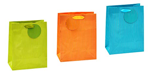 TSI 85016 Sacchetti da Regalo, 3 Colori a Righe d'Argento Sottilissimi, Misura 23 X 18 X 10 Cm, Confezione da 12 Pezzi