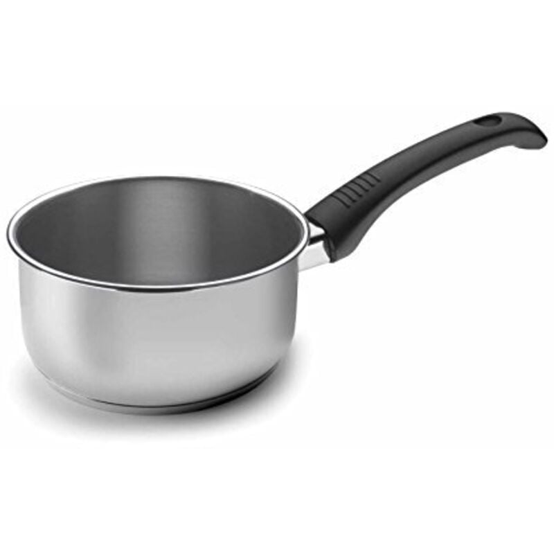 Acciaio inox 18/10 con triplo fondo Altezza: 7 cm Adatta a tutti i piani di cottura compresi quelli a induzione Diametro: 12 cm Ottimo rapporto qualità/prezzo - LACOR - Réf.: 85212 Casserole 12 cm - Studio - En inox 18/10 - Poignée ergonomique en bakélite noire - Triple fond - Embase anti-flamme - Tous feux dont induction.