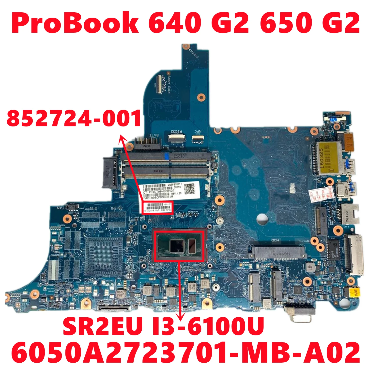 852724-001 852724-501 852724-601 For HP ProBook 640 G2 650 G2 Laptop Motherboard 6050A2723701-MB-A02 With I3-6100U 100% Tested