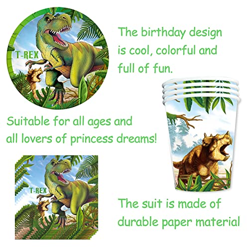 86pcs Dinosaur Party Stoviglie, Dino World Party Bambini Compleanno con Piatto, Tovaglioli, Tazze di Carta, Dino Set Stoviglie Piatto di Carta Animali Jungle Tema Partito Tovaglia Bambini