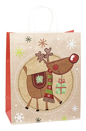 TSI 88316-A - Sacchetti regalo per Natale in carta kraft, confezione da 12 pezzi, dimensioni grandi 26 x 12 x 32 cm