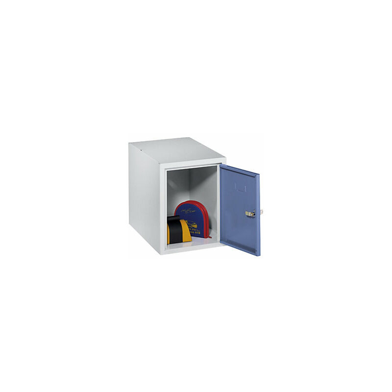 Cassetta di sicurezza, 1 scomparto, verniciato a fuoco, blu colomba/grigio chiaro. Fornitura = montato. Altezza = 380 mm. Profondità = 500 mm. Larghezza = 300 mm. Colore corpo = grigio chiaro RAL 7035. Colore porta = blu colomba RAL 5014. Serratura = serratura a cilindro differenziata. Numero scomparti in larghezza = 1 pz. Numero scomparti = 1 pz. Larghezza scomparti = 300 mm. Materiale = lamiera d'acciaio, con verniciatura a forno. Altezza armadietto = 390 mm. Dotazione interna = senza dotazione interna. Larghezza interna = 298 mm. Altezza interna = 375 mm. Profondità interna = 475 mm. Tipo di porta = ante piene. Numero chiavi = 2 pz. Altezza scomparti = 380 mm. Larghezza ripiani = 300 mm. Profondità ripiani = 500 mm. Struttura = saldata. Superficie = con verniciatura a forno. Robusta struttura in lamiera d'acciaio saldata, con verniciatura a fuoco. Ante lisce complete di portatarghette, montate su robuste cerniere con battuta a destra. Serrature a cilindro differenziate, con 2 chiavi