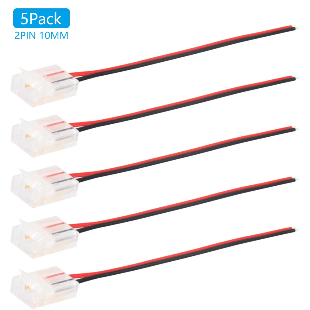 5 Pack 10cm 2 Pin 8mm/10mm Wide PCB DC 24V LED Connector Flexible Wire Welding Cable For SMD 5050 3528 2835 Single LED Strip