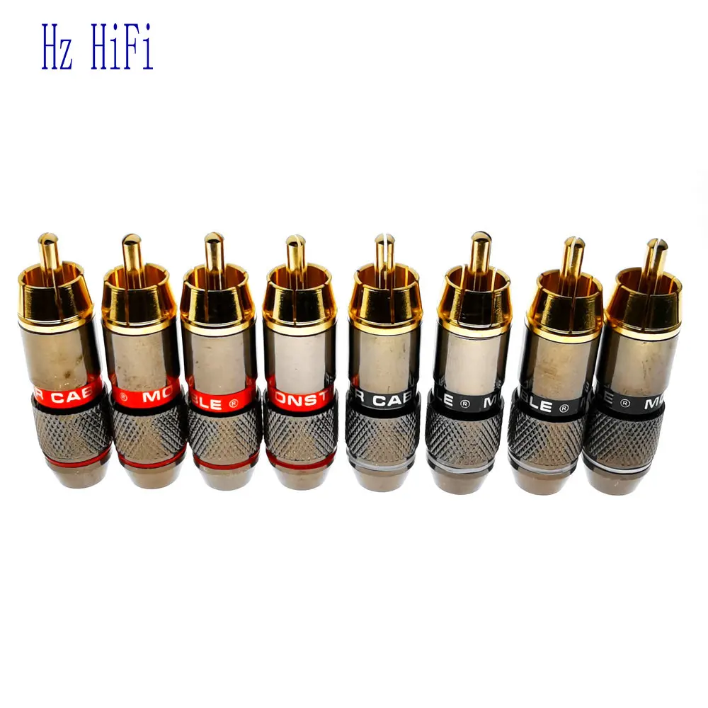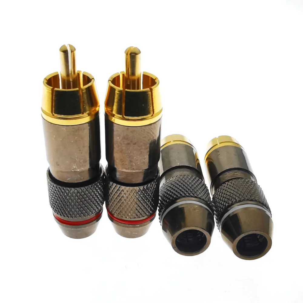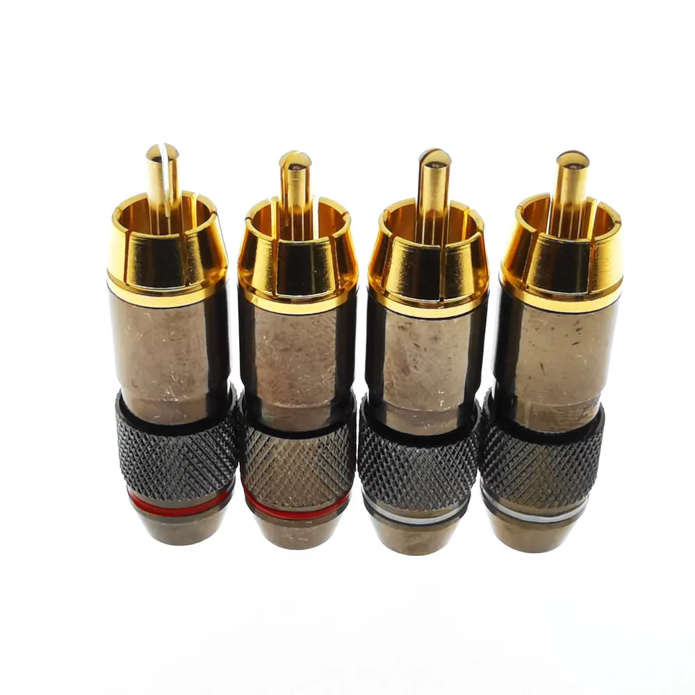 8PCS/12PCS High Quality RCA Plug Gold Plated 6mm Male Double Self Locking Lotus Wire Connectors Audio Adapter