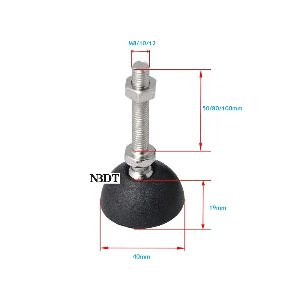 8Pcs/Lot Black Dia.40mm Nylon Leveling Feet Cups Leveler Swivel Adjustable Nickel Threaded Bolt For Machine Furniture