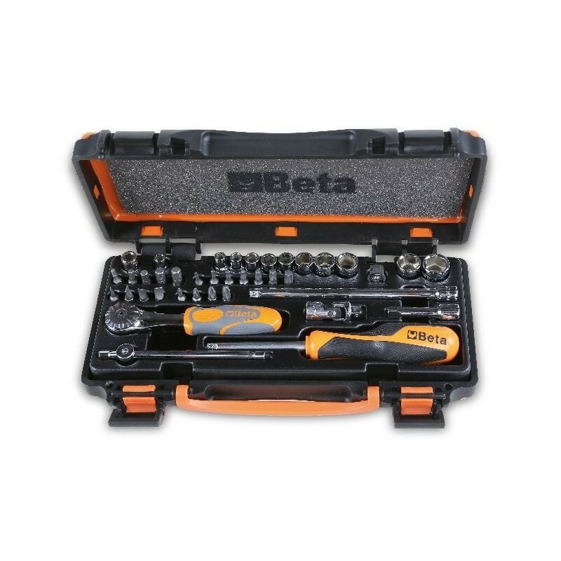 Assortimento di 11 chiavi a bussola esagonali, 20 inserti per avvitatori e 8 accessori in cassetta di lamiera - Beta 900/C11Z Nuovo cricchetto a 72 denti 350x150x50 mm - 1,2 kg Cod. Art. 009000984 900/C11Z Assortimento di 39 utensili: 861LP inserti per avvitatori per viti a testa con intaglio 0,5x3 - 0,8x5,5 - 1x5,5 - 1,2x6,5 mm 4 861PE inserti maschio esagonale per avvitatori 3 - 4 - 5 - 6 - 8 mm 5 861PH inserti per avvitatori per viti con impronta a croce Phillips® 0 - 1 - 2 - 3 4 861TX inserti per avvitatori per viti con impronta Torx® T8 - T10 - T15 - T20 T25 - T30 - T40 7 895/1 bussola portainserti 1 900 chiavi a bussola esagonali 1/4 5 - 5,5 - 6 - 7 - 8 - 9 - 10 11 - 12 - 13 - 14 mm 11 900/16 raccordo con attacco quadro 1/4 - 3/8 1 900/20 prolunga - 1/4 50 mm 1 900/21 prolunga - 1/4 150 mm 1 900/25 snodo 1/4 1 900BG/30 quadro con impugnatura 1/4 1 900/42 quadro scorrevole 1/4 1 900/55Z 1