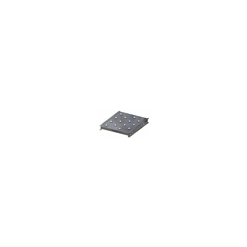 Piano a sfere, larghezza trasportatore 400 mm, lunghezza 500 mm, passo 125 mm. Fornitura = montato. Altezza d'ingombro = 70 mm. Larghezza trasportatore = 400 mm. Lunghezza = 500 mm. Passo = 125 mm. Diametro sfera = 25.4 mm. Larghezza totale = 440 mm. Portata utile della sfera = 30 kg. Materiale piano = lamiera d'acciaio, zincata. Tipo di prodotto = piani con rotelle a sfera. Ottimizzazione del flusso di materiale su trasportatori. Piano e profilati laterali in lamiera d'acciaio zincata. Adatti per carichi con base piana, chiusa e rigida. I piani a sfere GURA sono un elemento fondamentale e flessibile per la movimentazione delle merci e del materiale. Carichi pesanti con superficie inferiore liscia e dura possono essere movimentati con facilità a mano. Possono essere utilizzati anche come elemento di raccordo o variazione del senso di marcia nei sistemi di trasporto manuali o per forza di gravità. Se usati come piani di lavoro, facilitano la rotazione e la movimentazione della merce o