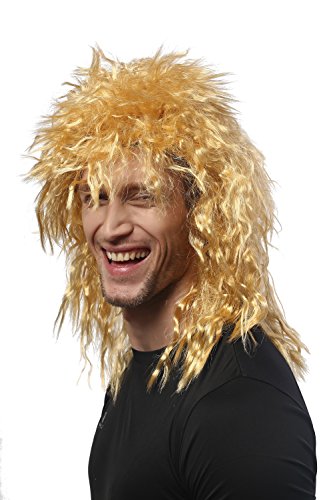 Parrucca da party per donne e uomini, di colore biondo oro con ricci fitti rizzati in aria e taglio a Vokuhila - Chioma da leone, per il tipo tamarro e la bello tigre. Codice colore: ZA35. Lunghezza: circa 45 cm.