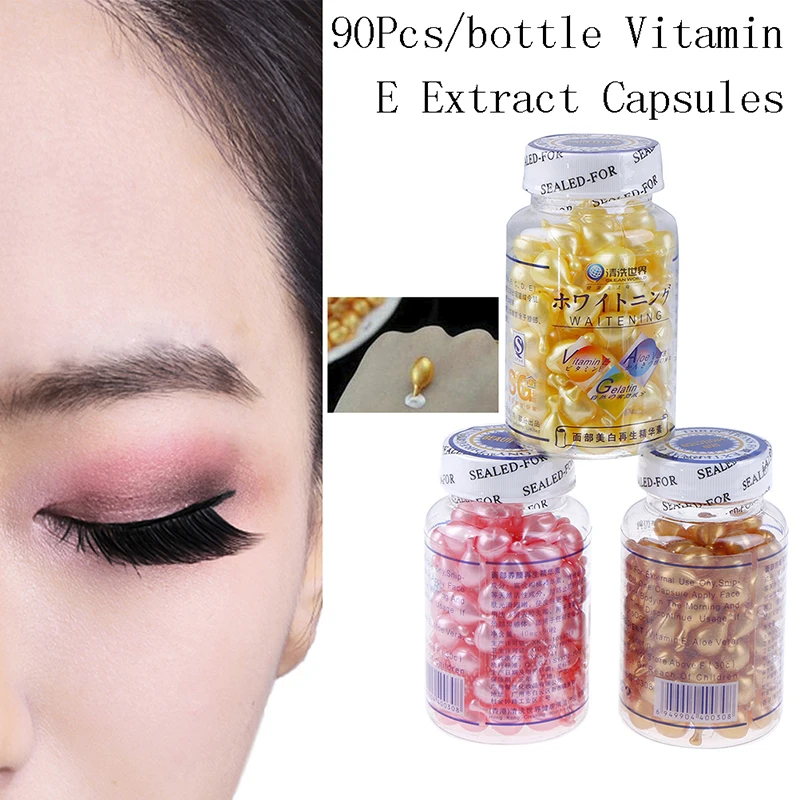90pcs/bottle Anti-wrinkle Whitening Cream Vitamin E Extract Capsules Ve Serum Face Freckle Capsule Gold/pink/yellow