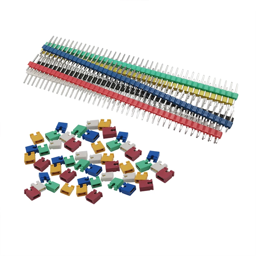 90PCS/lot Colorful 2.54mm Jumper Blocks & 2.54 40 Pin 1x40 Single Row Male Breakable Pin Header Connector Strip for Arduino