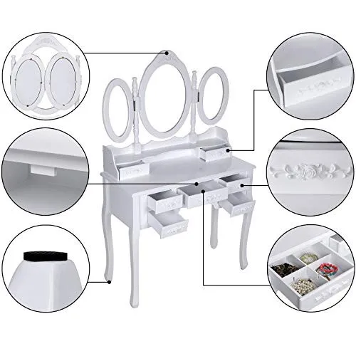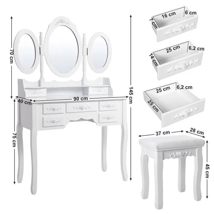 90X40X145cm European Style 7 Drawer Dressing Table With Stool Folding Mirror Beauty Table Solid Wood Leg Makeup Table HWC