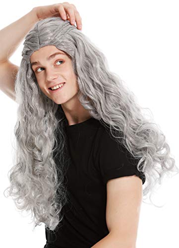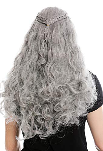 WIG ME UP - 91323-ZA68E Parrucca Donna Molto Lunga Ondulata Elaborate trecce Riga in Mezzo Romanticismo Fiabe Principessa Hippy Grigio