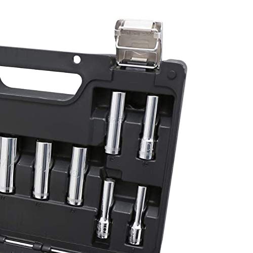 Il kit comprende: Chiavi a bussola 3/8: 6-7-8-9-10-11-12-13-14-15-16-17-18-19-20-21-22-24 mm, Chiavi a bussola 3/8 allungata: 8-9-10-12-13-14-17-19 mm, Chiavi a bussola 3/8 allungata: 16-21 mm