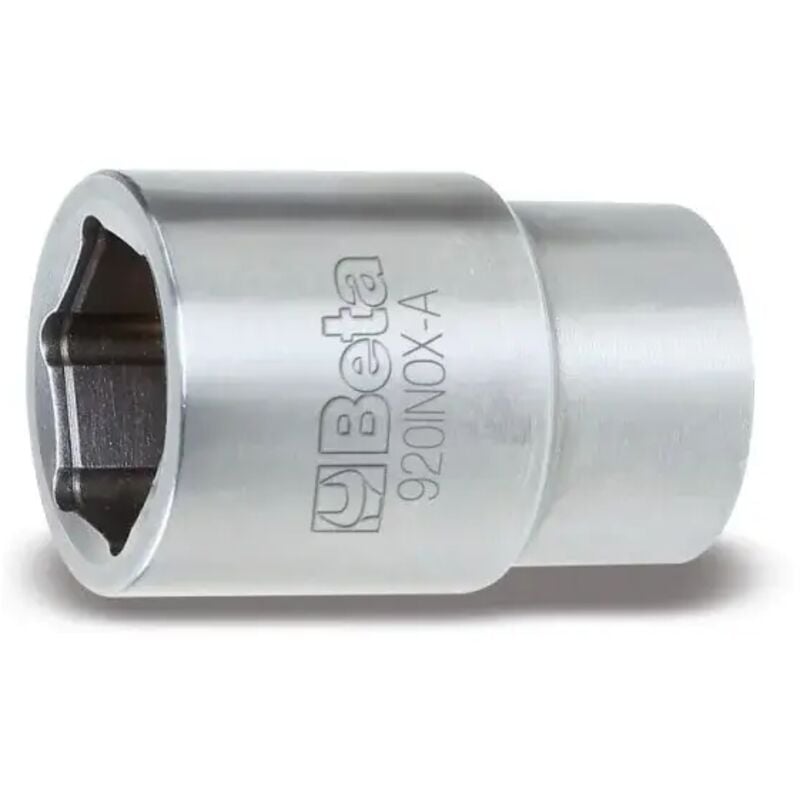 La chiave a bussola 1/2 esagonale Inox Beta 920INOX-A è un utensile manuale professionale, realizzato in acciaio inossidabile per garantire la massima resistenza possibile alla corrosione.Queste chiavi a bussola composte da acciaio Inox AISI 420 risultano infatti particolarmente resistenti, evitando la ruggine impropria e presentando eccellenti capacità meccaniche per garantire un rapporto perfetto tra durabilità ed efficacia.Dotate di attacco quadro femmina da 1/2 e bocca esagonale, queste chiavi sono disponibili in svariate misure per rispondere a tutte le più comuni necessità di applicazione.Le specifiche dimensioni di ogni singolo prodotto sono riportate nella scheda tecnica allegata e fruibile nell'apposita sezione. Tipologia: Chiave a bussola Attacco: 1/2 Profilo: Esagonale Lunghezza: 40 - 46 mm Diametro: 15 - 44 mm Pezzi per confezione: 1 Unità di misura: Millimetri Certificazione: DIN 3124 - UNI ISO 2725 Materiale: Acciaio Inox AISI 420 Utilizzo