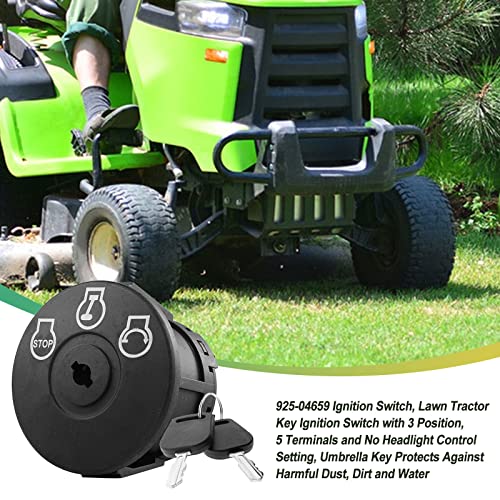 Sostituzione dell'avviatore di accensione: 925-04659 Interruttore di accensione, chiave del trattore da prato con 3 posizioni, 5 terminali e nessuna regolazione di controllo del faro, chiave ombrello protegge da polvere nociva, sporco e acqua.
