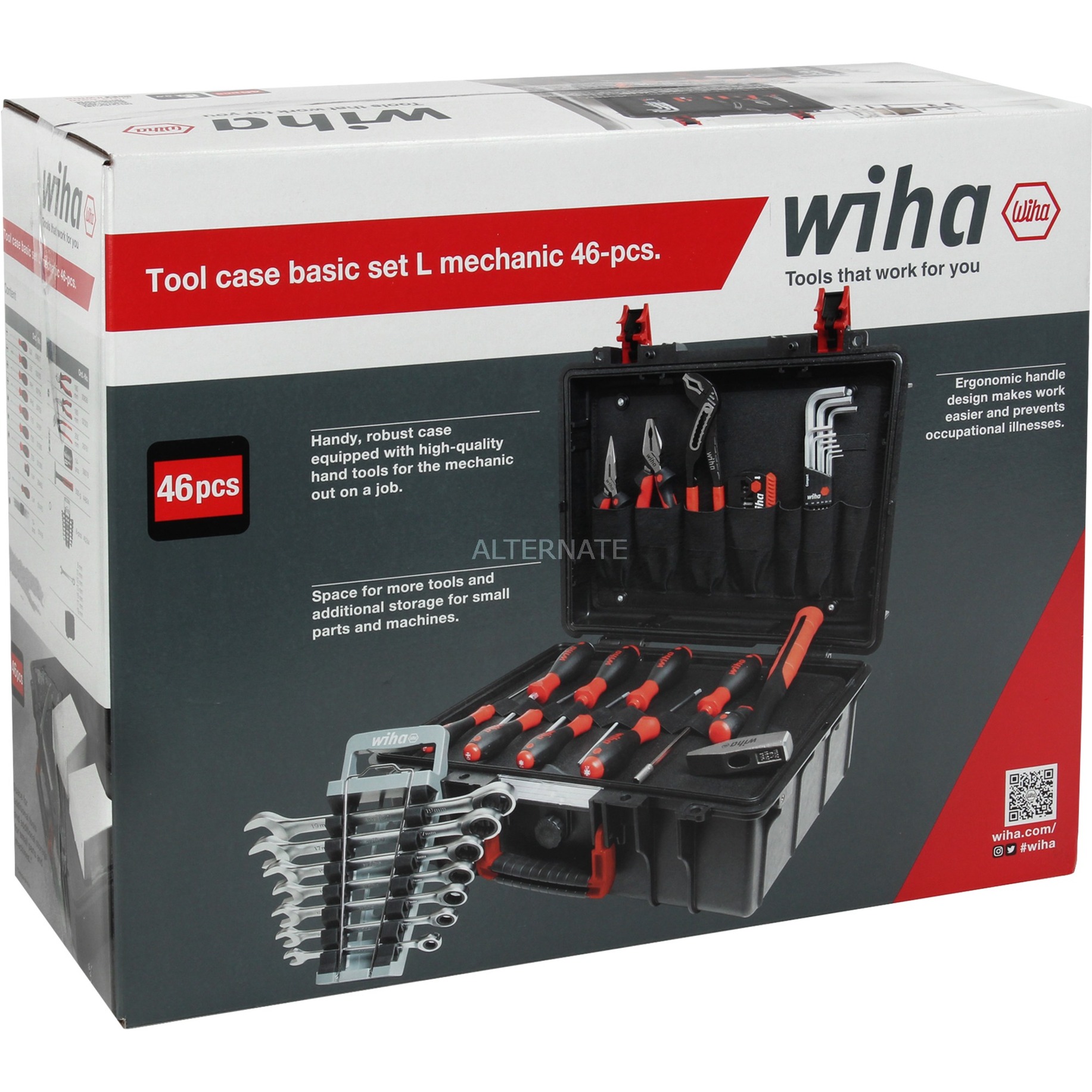 La valigetta meccanica Basic L di Wiha convince con una vasta gamma di utensili manuali di alta qualità. Cacciaviti ergonomici, una selezione di pinze, un set di chiavi a cricchetto ad anello e molti altri strumenti rendono il lavoro quotidiano notevolmente più facile. Realizzata in robusto polipropilene, la custodia può essere fissata contro il furto sugli occhielli integrati con lucchetti disponibili separatamente. L''impugnatura ergonomica bicomponente assicura una vestibilità confortevole. Grazie alla valvola di compensazione della pressione dell''aria, la custodia per attrezzi Basic è ideale anche per i voli. Può essere chiaramente assegnato al proprietario con l''etichetta del nome auto-etichettata. Certificata secondo la classe di protezione IP 67, la valigetta portautensili di Wiha è anche antipolvere e impermeabile. Con una capacità di 20 litri e una capacità di carico ammissibile fino a 14,2 kg, è adatto per un''ampia varietà di condizioni operative.