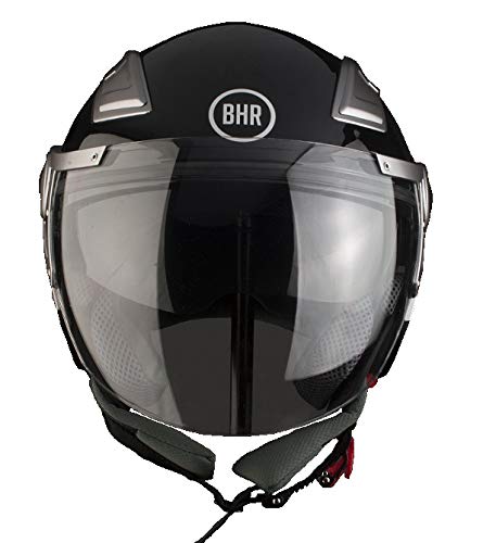 BHR 93309 Casco Doppia Visiera Modello Double 709, Nero Metallizzato, XS