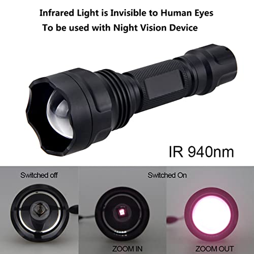IR 940nm Torcia Elettrica Zoomable Infrarossi LED USB Torce Ricaricabili Luce Invisibile Impermeabile Caccia per Dispositivo di Visione Notturna, Fotocamera, Occhiali