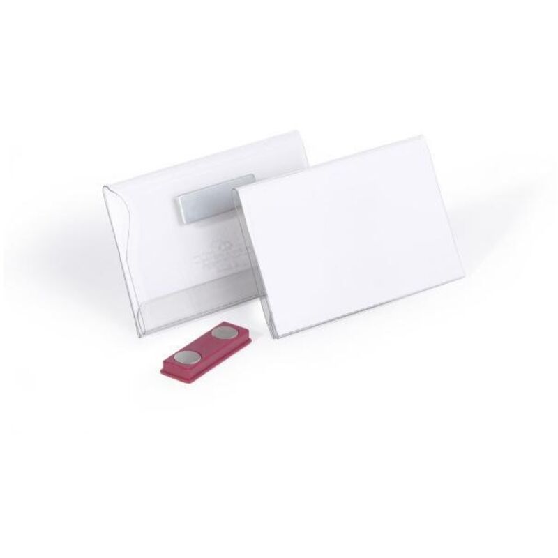 Targhetta per nome con magnete in plastica dura, alt. x largh. 54 x 90 mm, conf. da 25 pz. Fornitura = montato. Altezza = 54 mm. Larghezza = 90 mm. Materiale = plastica dura. Tipo di fissaggio = con strisce magnetiche. Colore = trasparente. Tipo di prodotto = badge con calamita. Per un fissaggio semplice e sicuro, anche su tessuti delicati. Tenuta salda grazie a magnete doppio. Con linguetta inseribile per taschini di camicie e giacche.