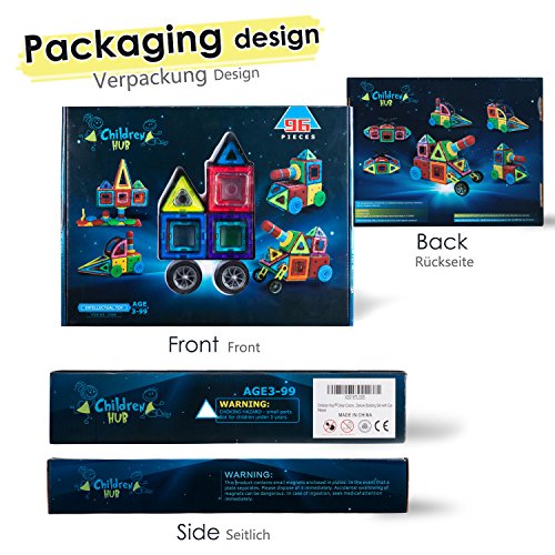 PERFECT GIFT FOR ANY OCCASION: This magnetic tiles set contains 96 pcs. of different geometrical shapes and patterns with bright colors that kids will definitely love