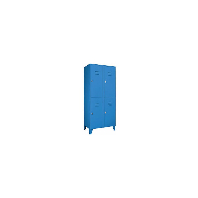Armadietto in acciaio con piedini, scomparti a metà altezza, ante piene, larghezza scomparti 400 mm, 4 scomparti, blu chiaro. Fornitura = montato. Altezza = 1850 mm. Profondità = 500 mm. Larghezza = 800 mm. Colore corpo = blu chiaro RAL 5012. Colore porta = blu chiaro RAL 5012. Serratura = chiavistello girevole. Numero scomparti in larghezza = 2 pz. Numero scomparti = 4 pz. Larghezza scomparti = 400 mm. Materiale = lamiera d'acciaio. Altezza armadietto = 1850 mm. Dotazione interna = 1 asta appendiabiti, 4 ganci scorrevoli. Larghezza interna = 398 mm. Altezza interna = 820 mm. Profondità interna = 475 mm. Tipo di porta = ante piene. Altezza scomparti = 820 mm. Larghezza ripiani = 400 mm. Profondità ripiani = 500 mm. Altezza piedini = 150 mm. Struttura = saldata a punti. Superficie = con verniciatura a forno. Robusto armadietto con piedini a norma DIN 4547. Spazio ottimizzato grazie agli scomparti a mezza altezza. Disponibili in varie larghezze e colori. A scelta con ante forate o piene