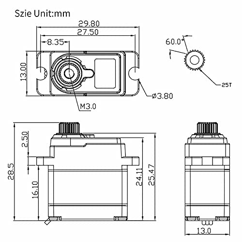3.Has 7.4V high-voltage servo with a wire length of 350mm.