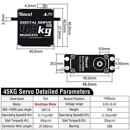 9imod Waterproof Servo BLS-HV45MG 45KG 180 Degree Aluminum Case Digital Metal Gear HV Brushless Servo for RC Car Truck Crawler Boat Robot DIY
