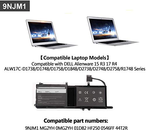 ASKC 9NJM1 Laptop Batteria per Dell Alienware 15 R3 R4 17 R4 R5 Series Notebook MG2YH 01D82 0546FF 44T2R HF250 0HF250 11.4V 99Wh