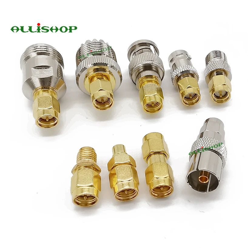 9Pcs/Set SMA Male to MCX/SMB/UHF/TV/BNC/N/F Female RF Adapter Straight SMA Adapter Kits Nickel Gold Plated Test Converter