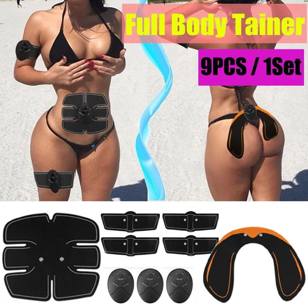 9PCS/Set EMS Muscle Training Gear Remote Control Abdominal Muscle Trainer Fat Burning Smart Body Building Fitness Kits