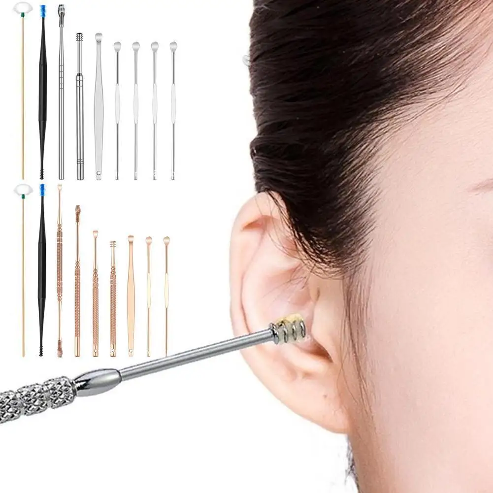 9Pcs/set Ear Wax Pickers Steel Earpick Wax Remover Clean Ear Spoon Pick Ear Care Ear Tool Cleaner Cleaner Curette W7H4