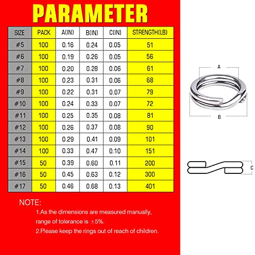 Anelli divisi ad alta resistenza: l'anello diviso da pesca potrebbe non solo garantire la connessione regolare di esche o esche, ma potrebbe anche fornire una mossa realistica per esca o esca. Sono realizzati con materiale di alta qualità. Usa un'elevata resistenza per evitare che i pesci separino. Quando li colleghi con l'esca o le esche, rimarrai colpito dalla sua elevata resistenza e dalle prestazioni di resistenza alla corrosione.