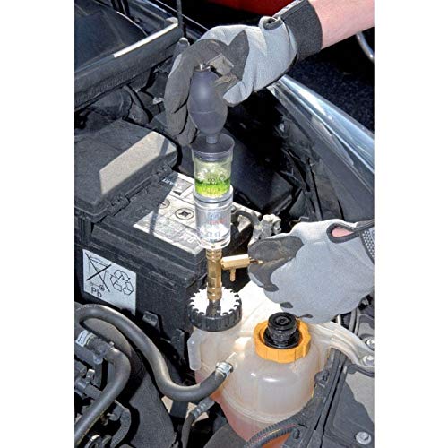 In caso di perdite sulla testa del cilindro si mescolano gas di scarico con il liquido di raffreddamento, che porta a una busta di colore nel liquido di prova. Ciò non avviene se è tutto in ordine.