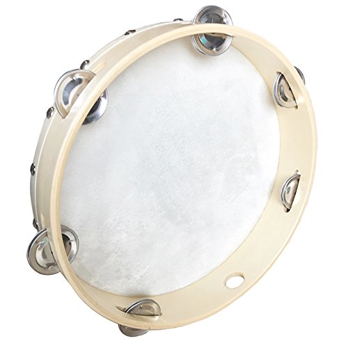 A-Star Tamburello con testa palmare da 10 pollici / 25 cm, tradizionale singola fila di campanelli, testa naturale, strumento musicale educativo