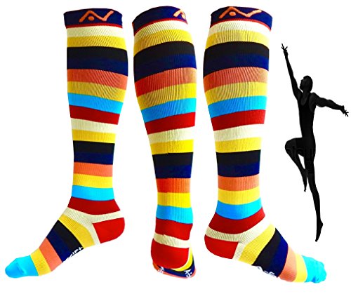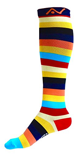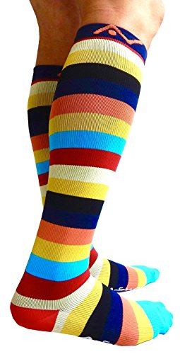 A-swift - Calze a compressione graduata (1 paio) per donne e uomini per sport, infermieri, viaggi, sci e gravidanza, vene varicose, TVP: aumentano la resistenza e il recupero, Savvy Stripes, L/XL