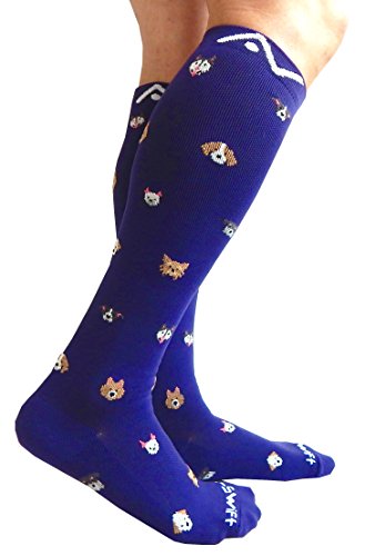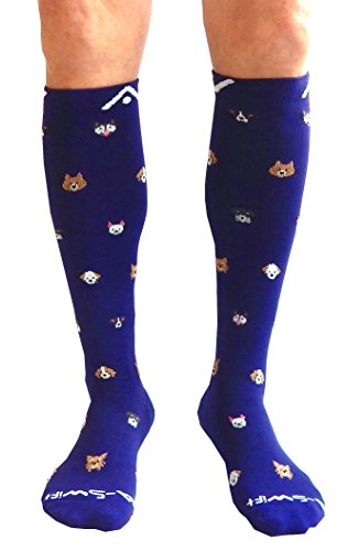A-swift - Calze a compressione graduata (1 paio) per donne e uomini per sport, infermieri, viaggi, sci e gravidanza, vene varicose, TVP: aumentano la resistenza e il recupero, Doggy, S/M